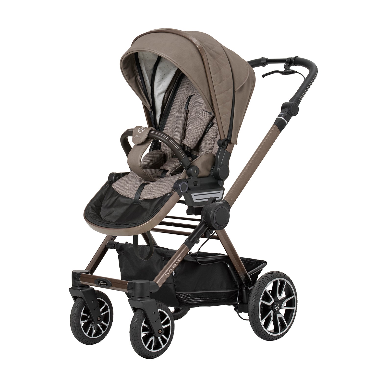 Der neue All-Terrain Kinderwagen aus der Mercedes-Benz Collection, entwickelt in Zusammenarbeit mit dem Mercedes-Benz Design Team, ist die perfekte Wahl für Eltern, die Qualität, Komfort und Stil auf höchstem Niveau suchen.