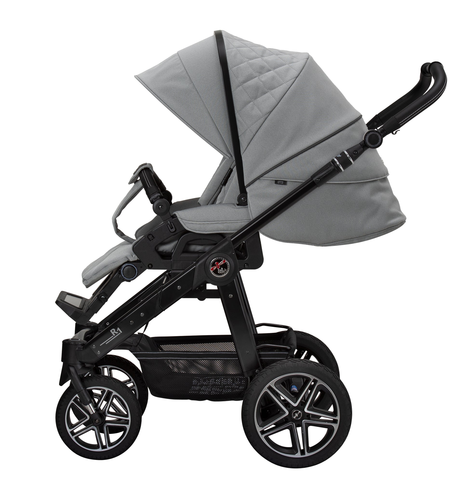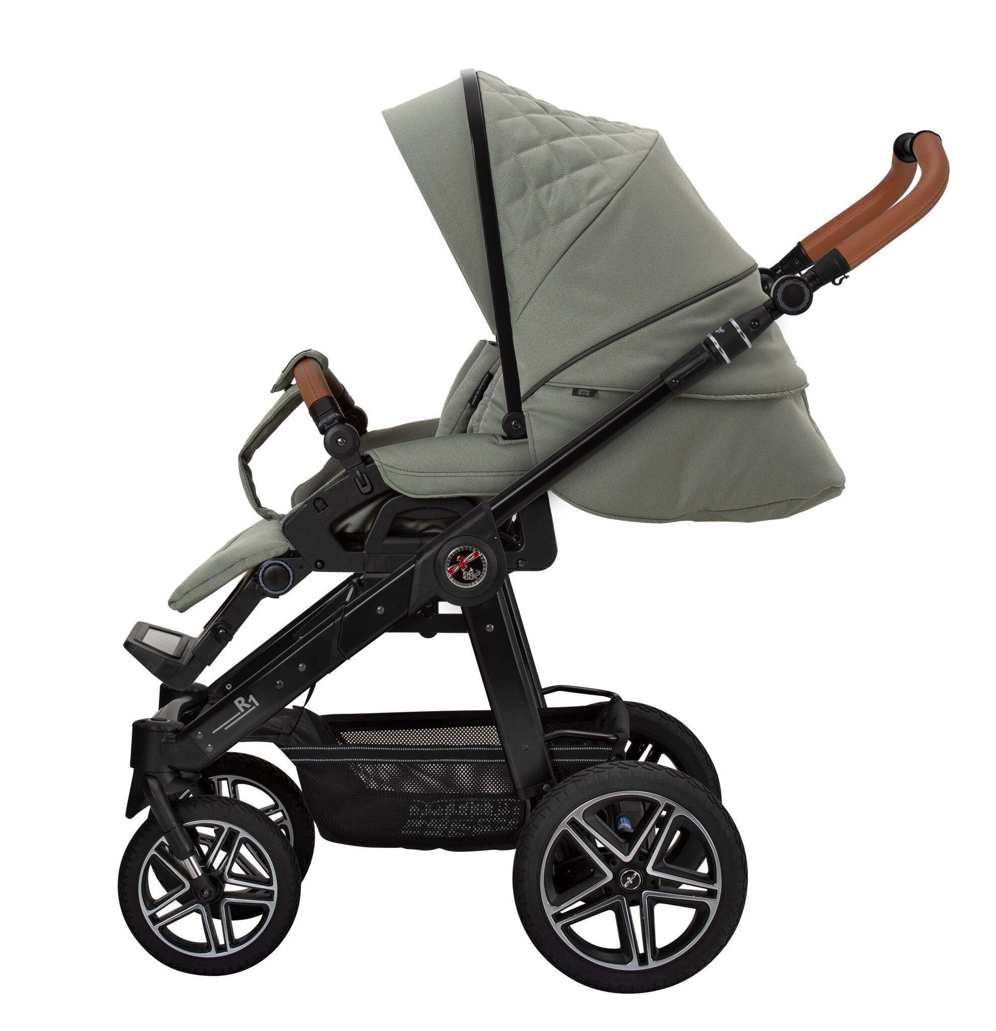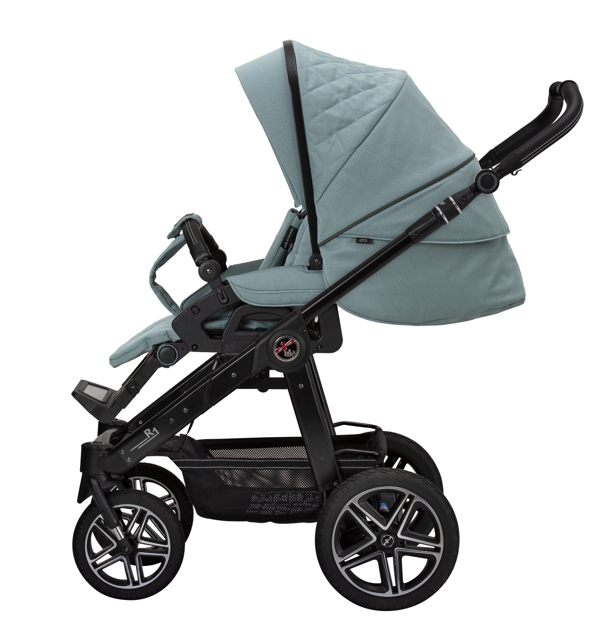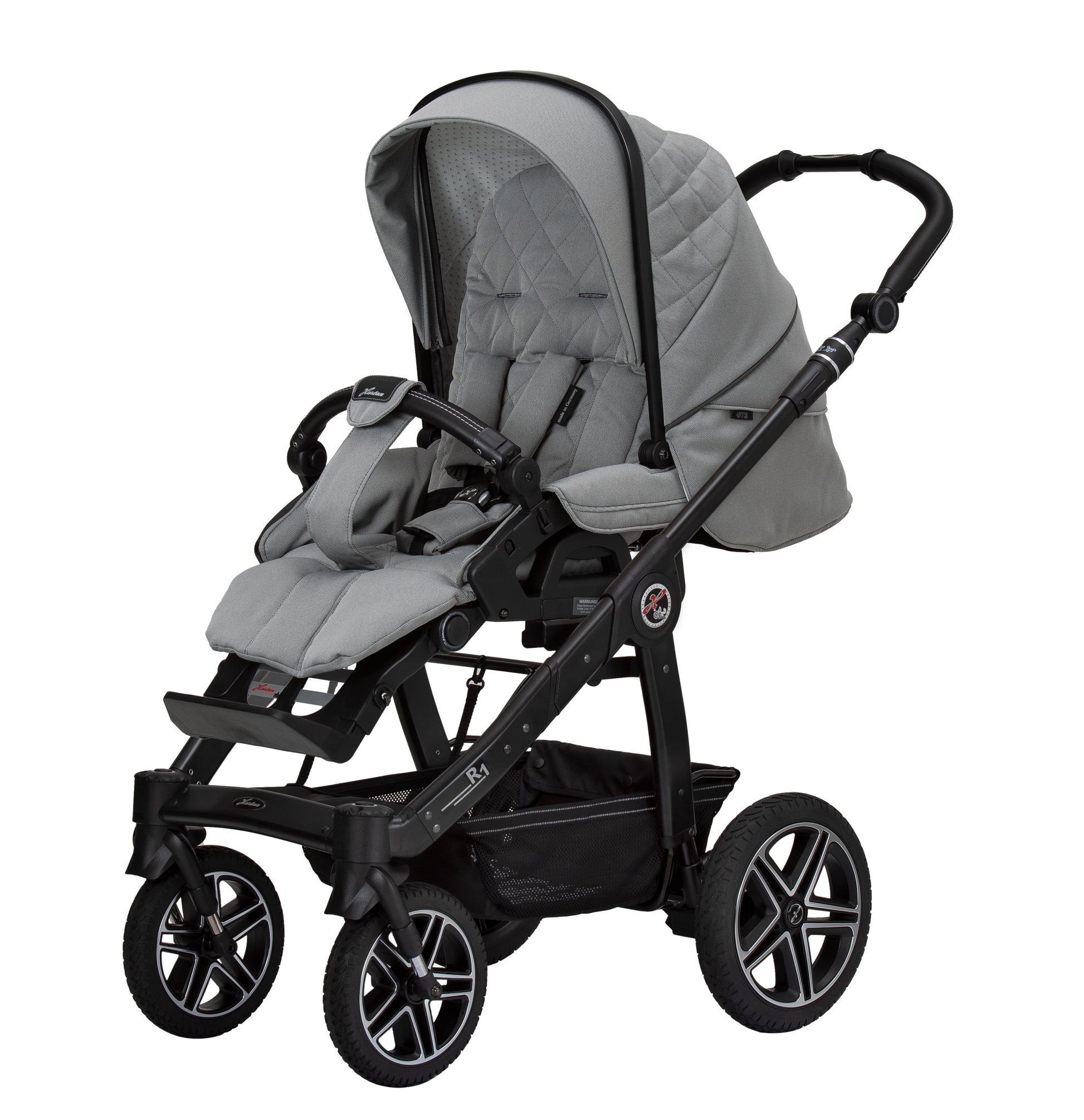 Beim Kinderwagen R1 GTS aus der Selection Collection gibt die optional erhältliche Handbremse am Griff Sicherheit in jedem Gelände. Die gefederten, extragroßen Fronträder bieten optimale Fahreigenschaften auf jedem Untergrund: Als Schwenkräder meistern sie den City-Parcour. Fest arretiert bleiben sie auch auf der Adventure-Tour über Stock und Stein sicher in der Spur. Der Kinderwagen R1 GTS überzeugt mit purer Fahrfreude ebenso wie in puncto sportlichem Auftritt – ein echter Sportwagen eben.