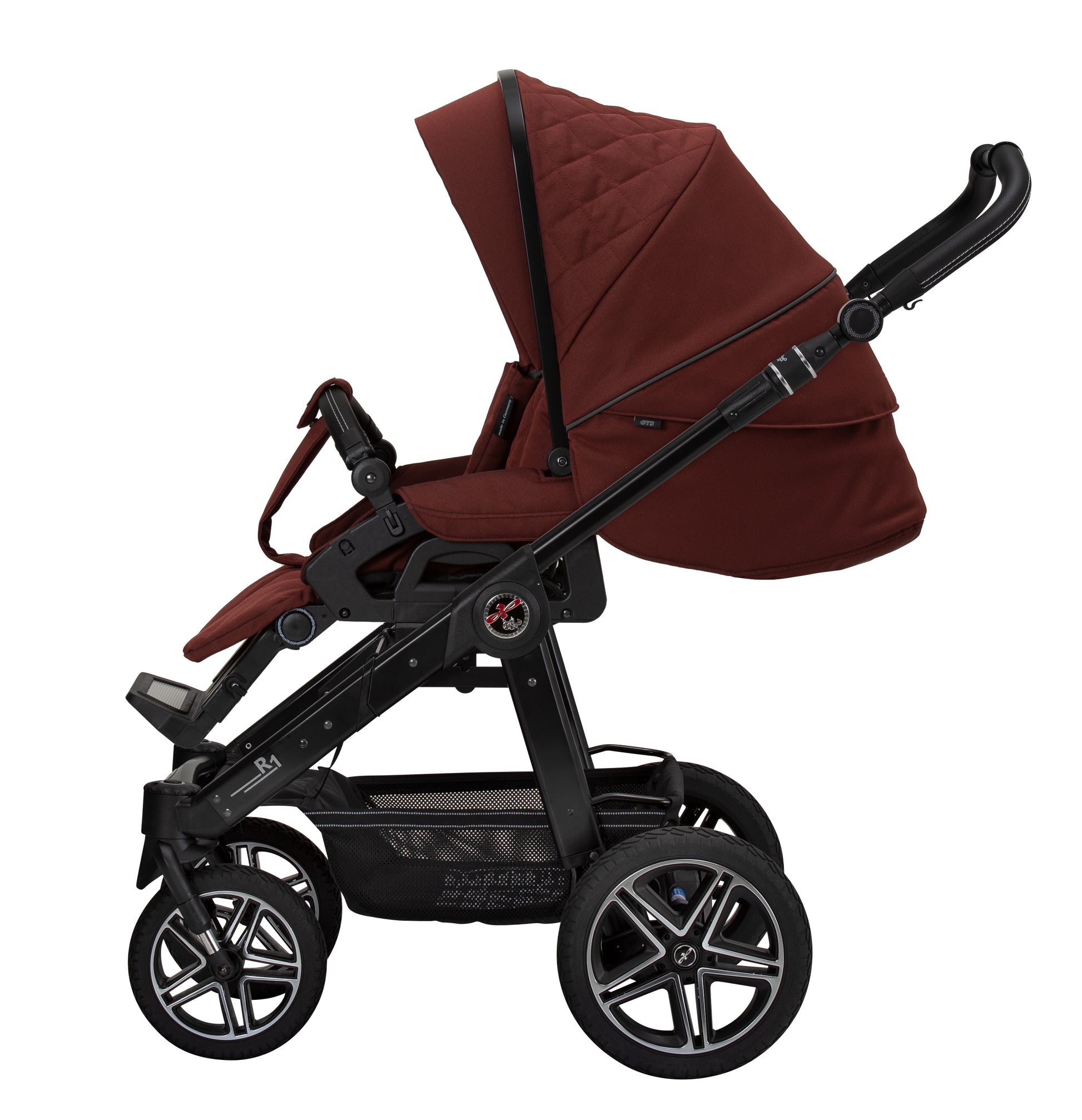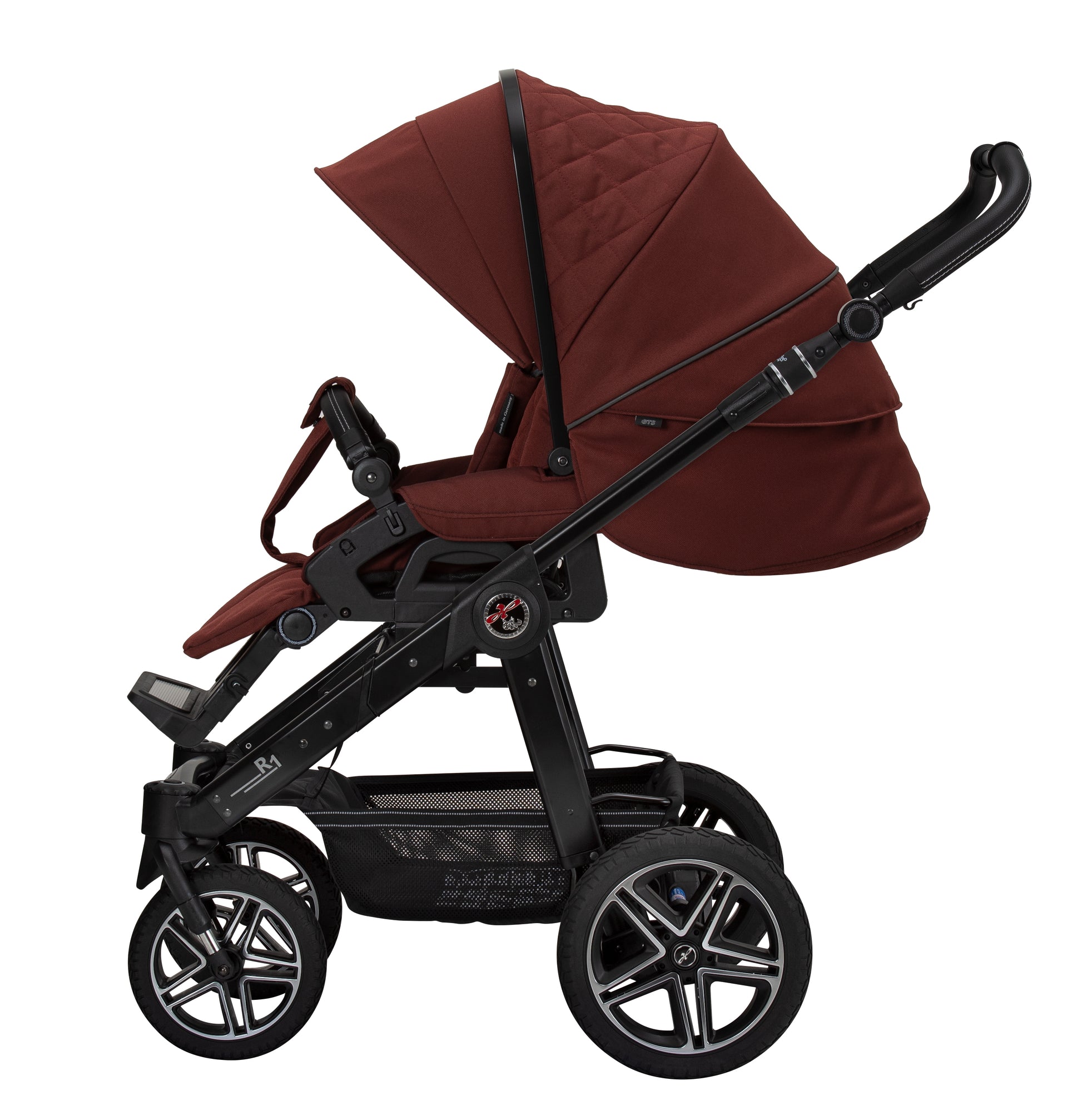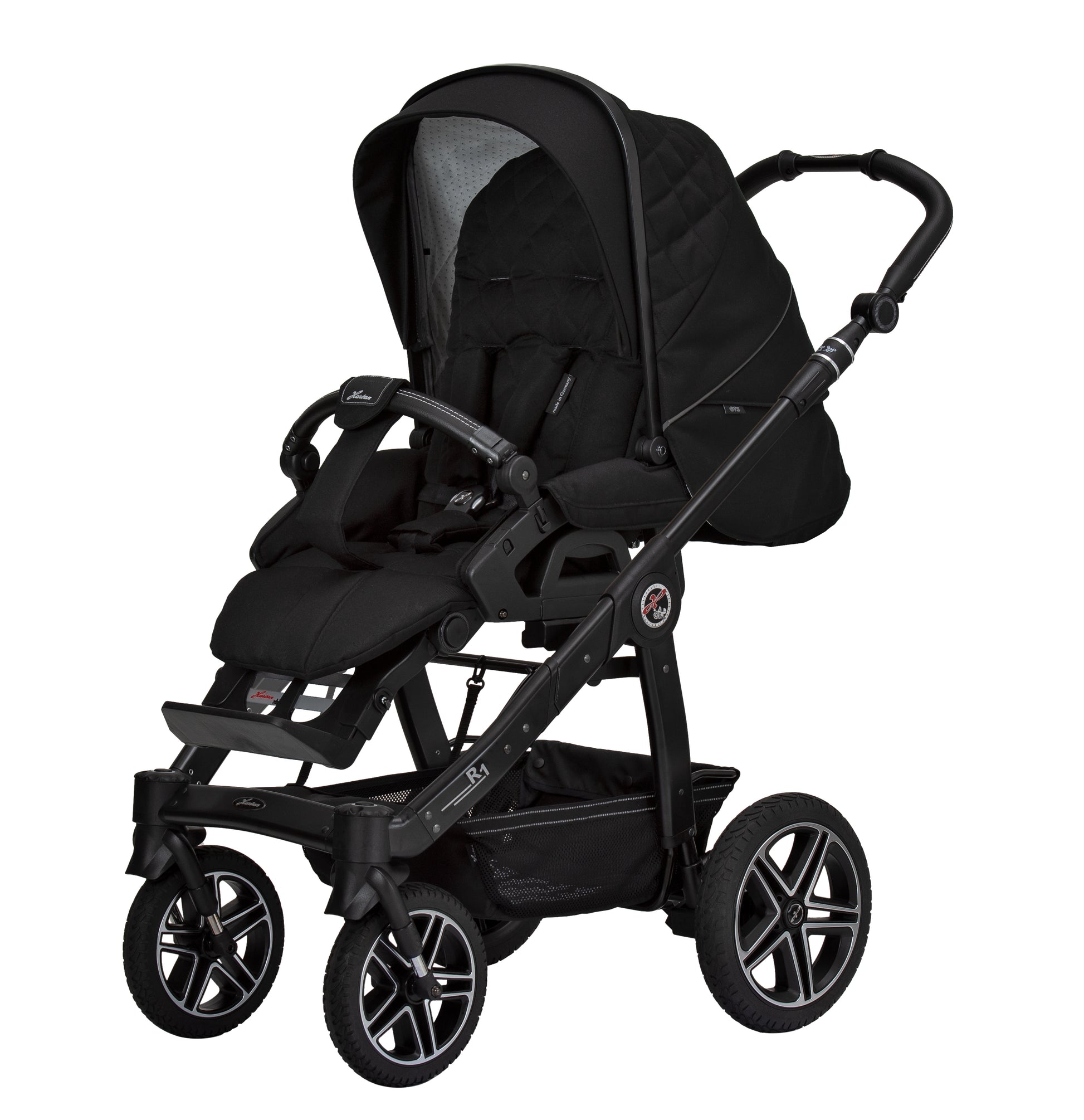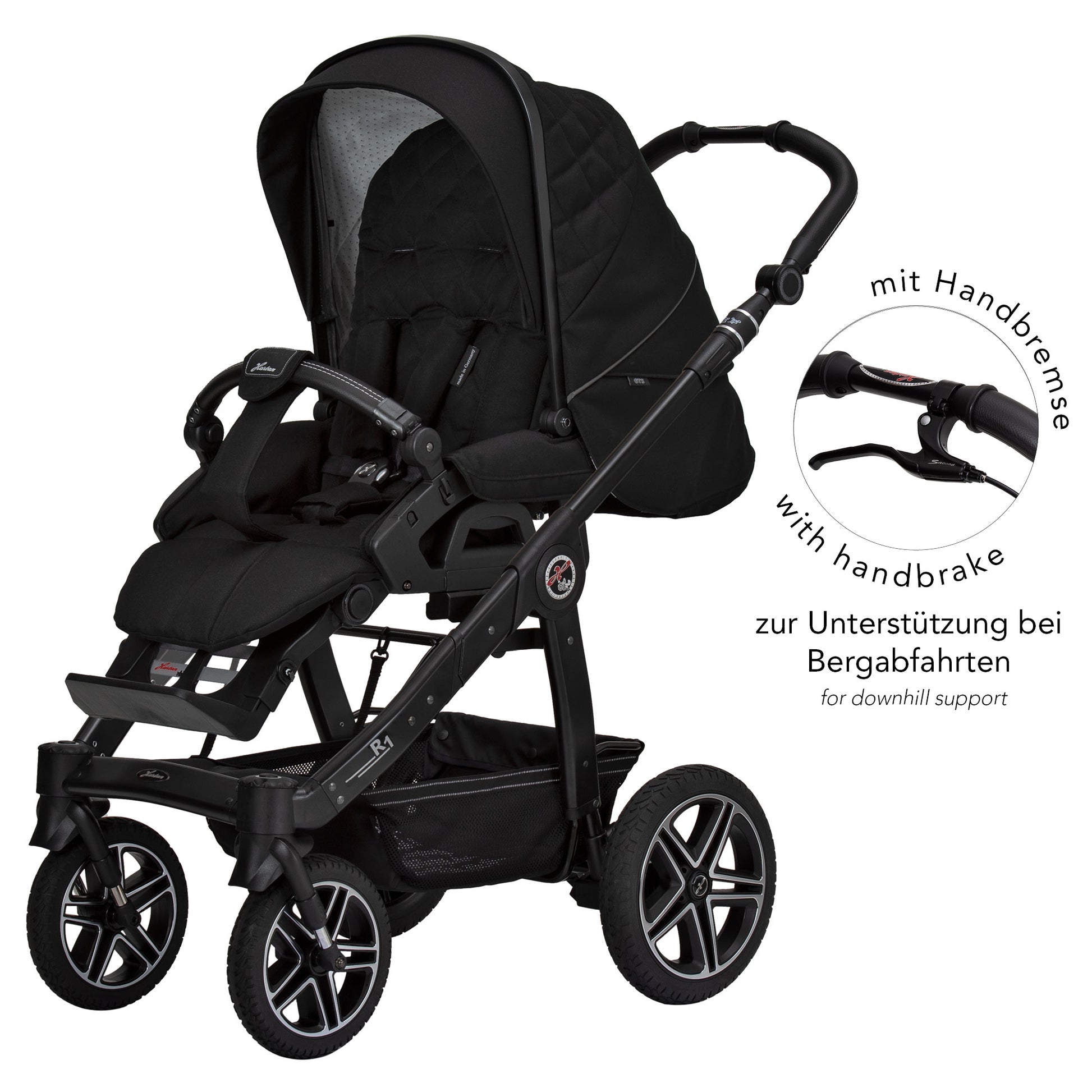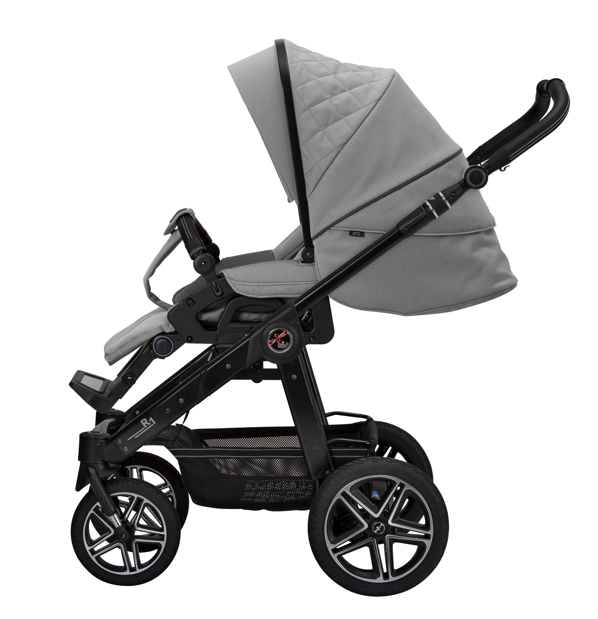 Beim Kinderwagen R1 GTS aus der Selection Collection gibt die optional erhältliche Handbremse am Griff Sicherheit in jedem Gelände. Die gefederten, extragroßen Fronträder bieten optimale Fahreigenschaften auf jedem Untergrund: Als Schwenkräder meistern sie den City-Parcour. Fest arretiert bleiben sie auch auf der Adventure-Tour über Stock und Stein sicher in der Spur. Der Kinderwagen R1 GTS überzeugt mit purer Fahrfreude ebenso wie in puncto sportlichem Auftritt – ein echter Sportwagen eben.