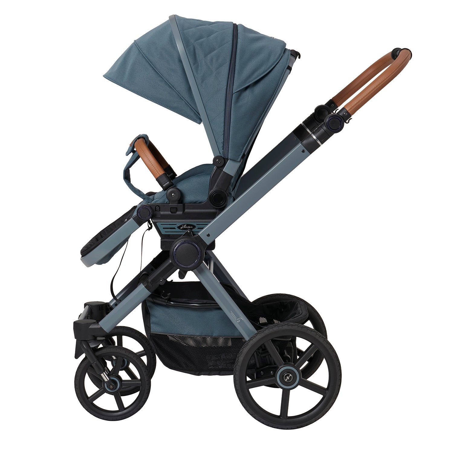 Mit dem Kinderwagen T2 Offroad bist Du auf jedem Terrain flexibel unterwegs – egal ob Stadt, Park, Waldweg oder Schotterstraße. Dank seiner großen Räder (23,4 cm vorne / 32 cm hinten) und den stabilen Offroad-Felgen genießt Du eine besonders ruhige Fahrt und meisterst selbst unebenes Gelände mühelos.