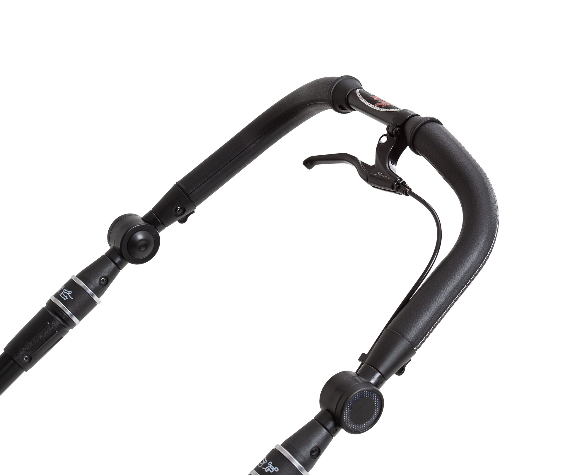Die GTR-Sitzeinheit ist im Handumdrehen vom Gestell abnehmbar und wendbar. Der magnetische 5-Punkt Sicherheitsgurt und der abnehmbare Schutzbügel mit Einstiegsfunktion und Sicherheitsverschluss bieten optimale Sicherheit für die Kleinsten. Die mehrfach verstellbare Rückenlehne kann bis in die flache Liegeposition verstellt werden. Die Klimazone im Verdeck sorgt für optimale Luftzirkulation im Kinderwagen. Hinzu kommt die doppelt ausklappbare Sonnenblende, welche für den optimalen Sonnenschutz des Nachwuchses sorgt. Der Rock IT GTR Outdoor Kinderwagen verfügt auch über eine extralange, mehrfach verstellbare Fußstütze. Der höhenverstellbare Schiebergriff ermöglicht es Eltern unterschiedlicher Größe, den Kinderwagen bequem zu schieben. Die Handbremse unterstützt und bietet zusätzliche Sicherheit bei Bergabfahrten.